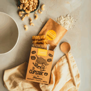 Ingrediente: tăiței de mei fără gluten 76,9% (făină de mei, apă potabilă), amidon de cartofi, pudră de băutură din orez, ulei de avocado, făină de caju, sare afumată (sare de mare, fum) 1,1%, sare de Himalaya, pudră de ceapă, pudră de usturoi, extract de drojdie, frunze de pătrunjel, aromă naturală, piper negru măcinat, arpagic verde.